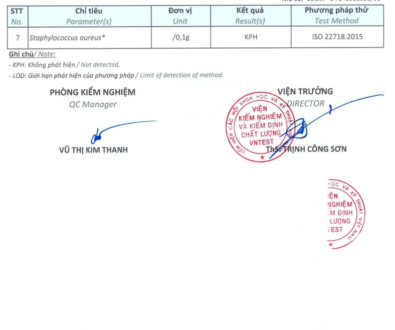 ẢNH PHIẾU KẾT QUẢ THỬ NGHIỆM CỦA SẢN PHẨM