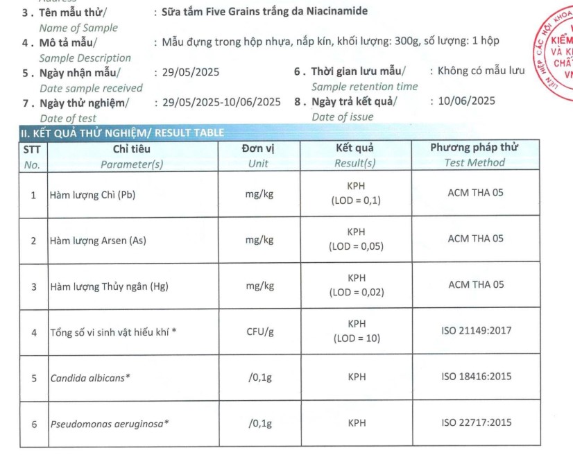 ẢNH PHIẾU KẾT QUẢ THỬ NGHIỆM CỦA SẢN PHẨM