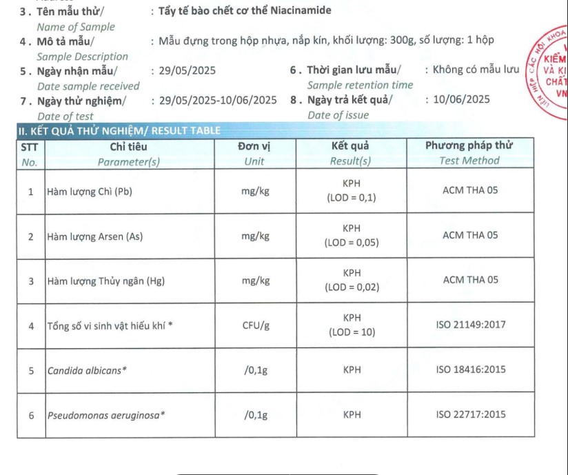 ẢNH PHIẾU KẾT QUẢ THỬ NGHIỆM CỦA SẢN PHẨM