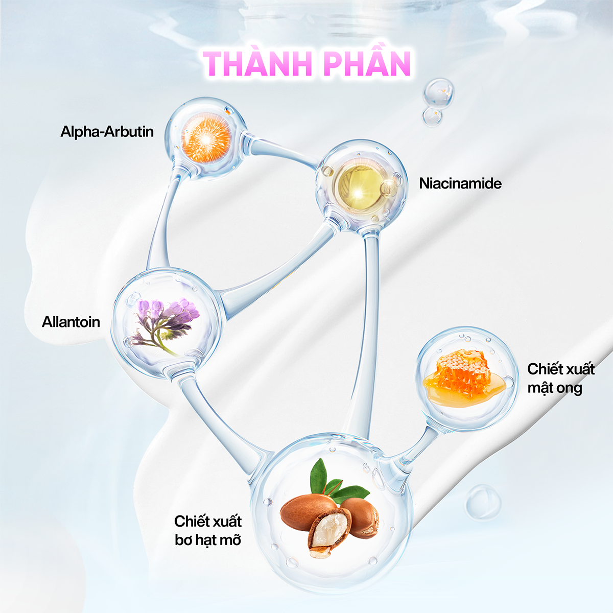 Dưỡng ẩm sâu, cung cấp dưỡng chất tối đa. Đặc biệt, tinh chất niacinamide mang đến một làn da mềm mại, mịn màng và sáng khỏe.