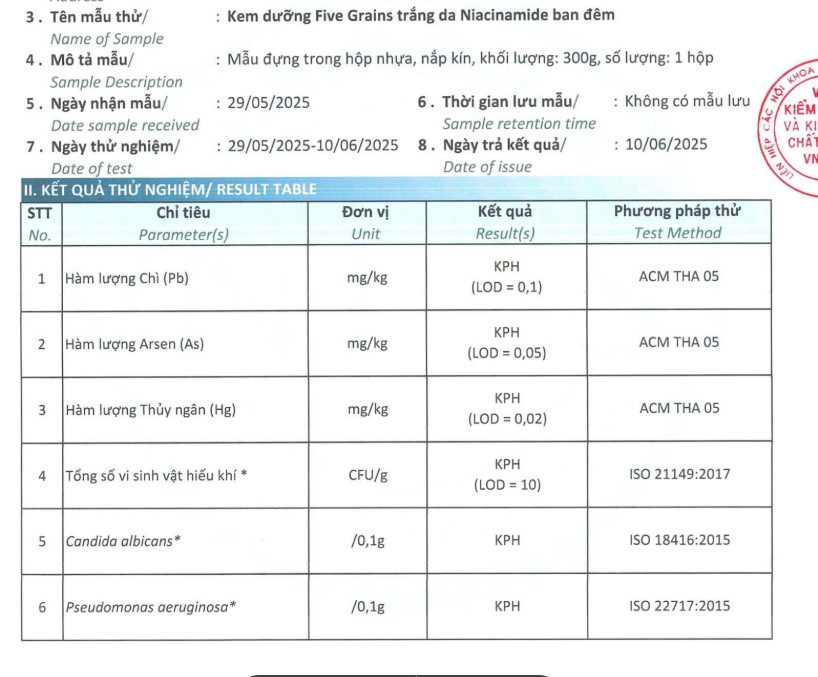 ẢNH PHIẾU KẾT QUẢ THỬ NGHIỆM CỦA SẢN PHẨM